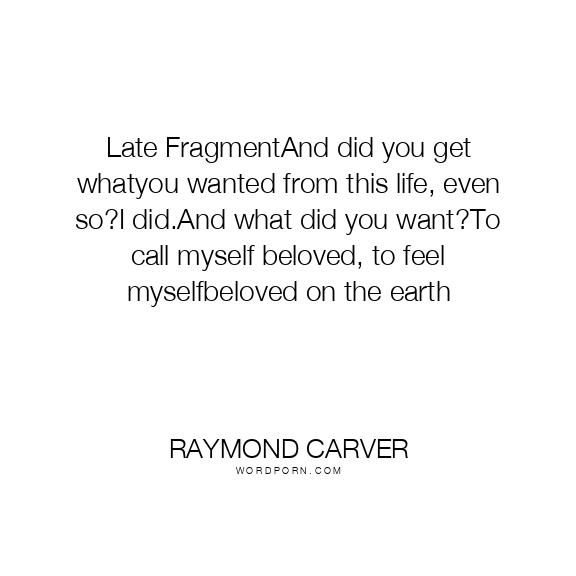 Late FragmentAnd did you get whatyou wanted from this life, even so?I did.And what did you want?To call myself beloved, to feel myselfbeloved on the earth