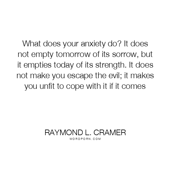 What does your anxiety do? It does not empty tomorrow of its sorrow, but it empties today of its strength. It does not make you escape the evil; it makes you unfit to cope with it if it comes