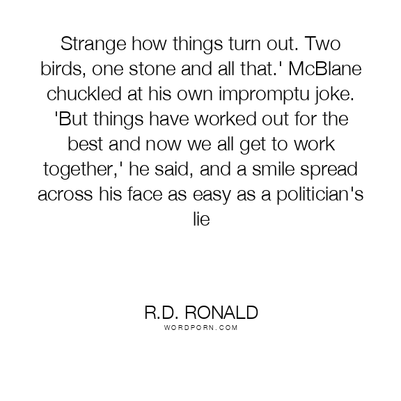 Strange how things turn out. Two birds, one stone and all that.' McBlane chuckled at his own impromptu joke. 'But things have worked out for the best and now we all get to work together,' he said, and a smile spread across his face as easy as a politician's lie
