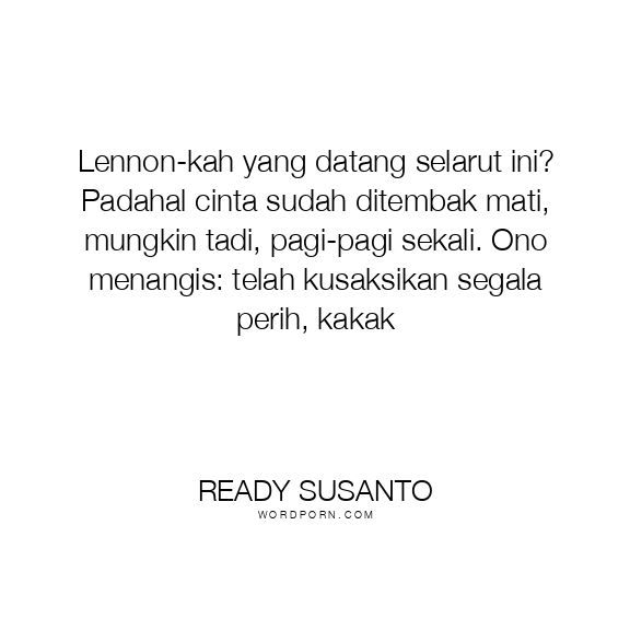 Lennon-kah yang datang selarut ini? Padahal cinta sudah ditembak mati, mungkin tadi, pagi-pagi sekali. Ono menangis: telah kusaksikan segala perih, kakak