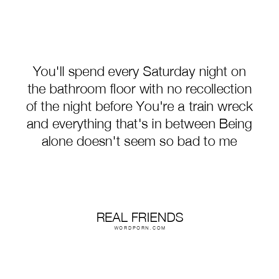 You'll spend every Saturday night on the bathroom floor with no recollection of the night before You're a train wreck and everything that's in between Being alone doesn't seem so bad to me