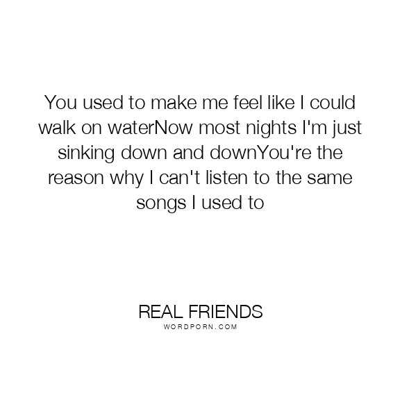 You used to make me feel like I could walk on waterNow most nights I'm just sinking down and downYou're the reason why I can't listen to the same songs I used to