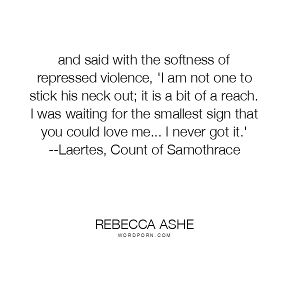 and said with the softness of repressed violence, 'I am not one to stick his neck out; it is a bit of a reach. I was waiting for the smallest sign that you could love me... I never got it.' --Laertes, Count of Samothrace