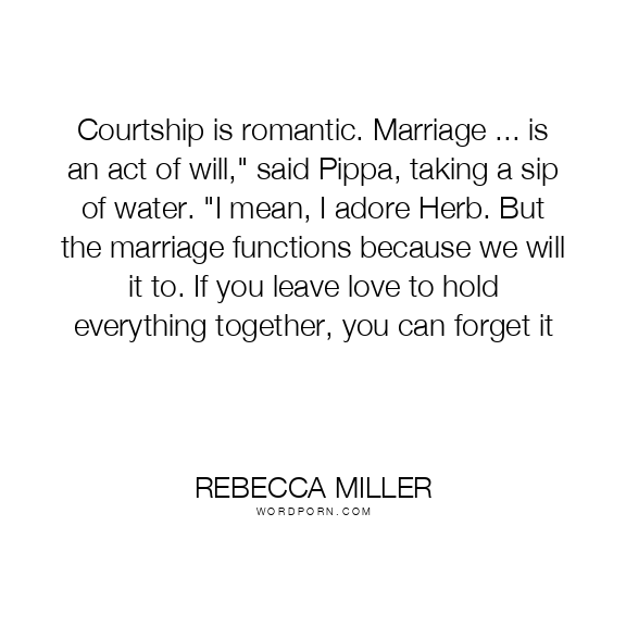 Courtship is romantic. Marriage ... is an act of will," said Pippa, taking a sip of water. "I mean, I adore Herb. But the marriage functions because we will it to. If you leave love to hold everything together, you can forget it