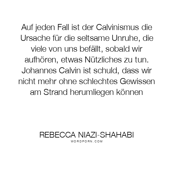 Auf jeden Fall ist der Calvinismus die Ursache für die seltsame Unruhe, die viele von uns befällt, sobald wir aufhören, etwas Nützliches zu tun. Johannes Calvin ist schuld, dass wir nicht mehr ohne schlechtes Gewissen am Strand herumliegen können