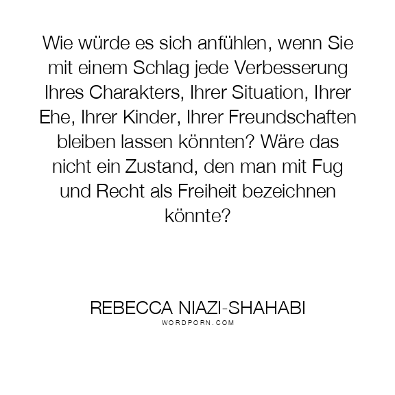 Wie würde es sich anfühlen, wenn Sie mit einem Schlag jede Verbesserung Ihres Charakters, Ihrer Situation, Ihrer Ehe, Ihrer Kinder, Ihrer Freundschaften bleiben lassen könnten? Wäre das nicht ein Zustand, den man mit Fug und Recht als Freiheit bezeichnen könnte?
