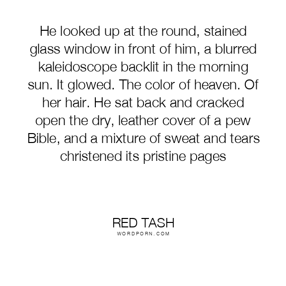 He looked up at the round, stained glass window in front of him, a blurred kaleidoscope backlit in the morning sun. It glowed. The color of heaven. Of her hair. He sat back and cracked open the dry, leather cover of a pew Bible, and a mixture of sweat and tears christened its pristine pages