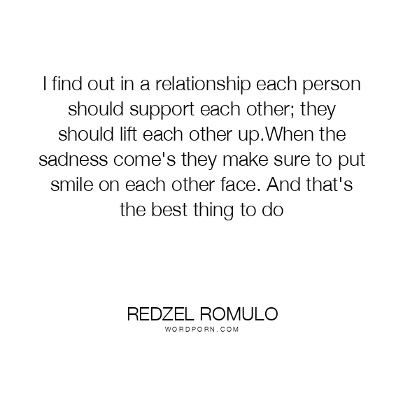 I find out in a relationship each person should support each other; they should lift each other up.When the sadness come's they make sure to put smile on each other face. And that's the best thing to do