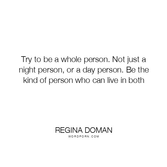 Try to be a whole person. Not just a night person, or a day person. Be the kind of person who can live in both