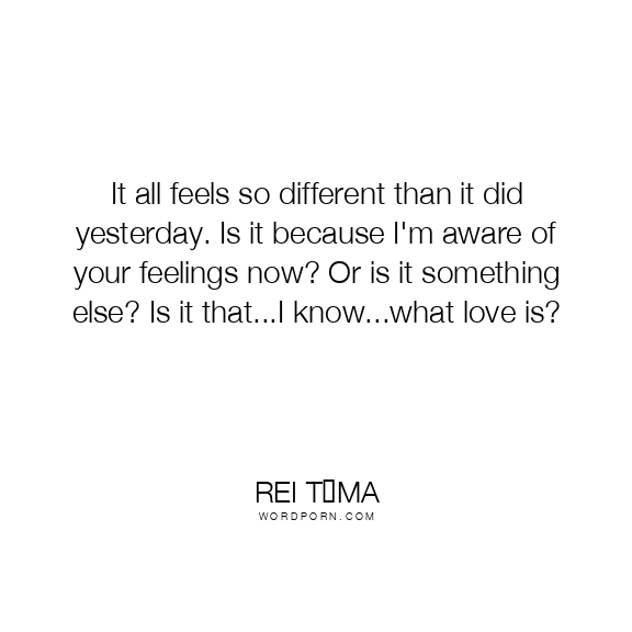 It all feels so different than it did yesterday. Is it because I'm aware of your feelings now? Or is it something else? Is it that...I know...what love is?