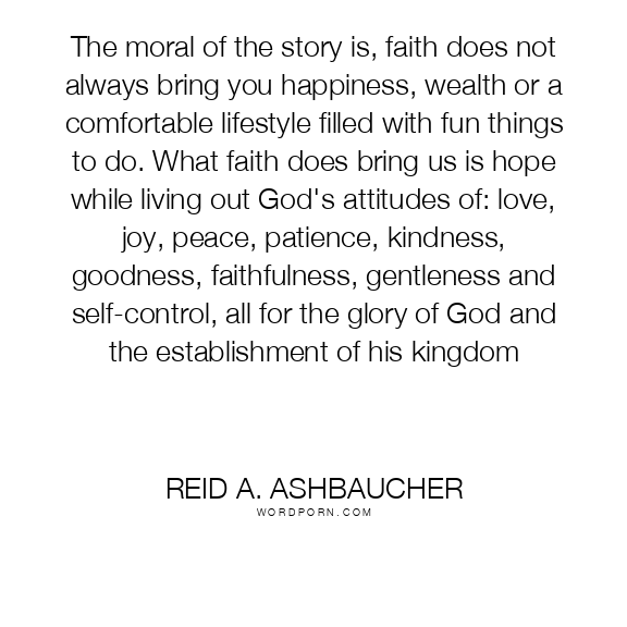 The moral of the story is, faith does not always bring you happiness, wealth or a comfortable lifestyle filled with fun things to do. What faith does bring us is hope while living out God's attitudes of: love, joy, peace, patience, kindness, goodness, faithfulness, gentleness and self-control, all for the glory of God and the establishment of his kingdom