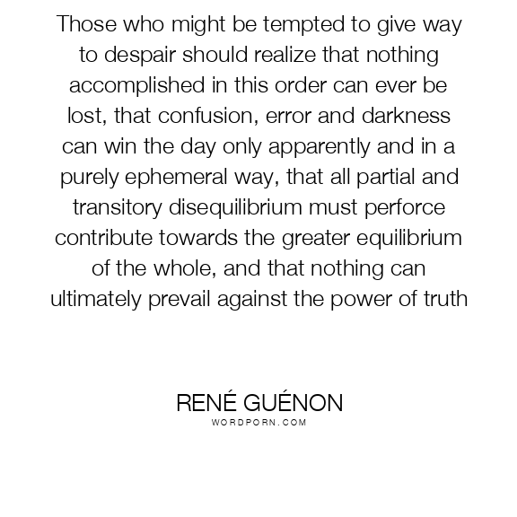 Those who might be tempted to give way to despair should realize that nothing accomplished in this order can ever be lost, that confusion, error and darkness can win the day only apparently and in a purely ephemeral way, that all partial and transitory disequilibrium must perforce contribute towards the greater equilibrium of the whole, and that nothing can ultimately prevail against the power of truth