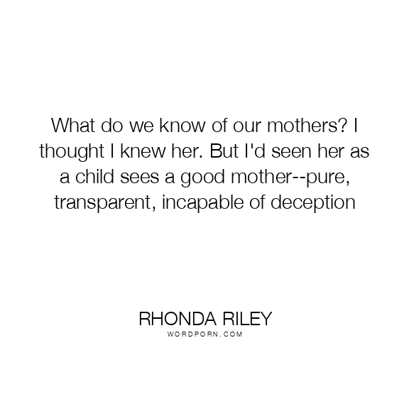 What do we know of our mothers? I thought I knew her. But I'd seen her as a child sees a good mother--pure, transparent, incapable of deception