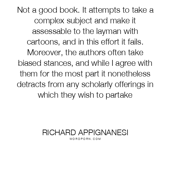 Not a good book. It attempts to take a complex subject and make it assessable to the layman with cartoons, and in this effort it fails. Moreover, the authors often take biased stances, and while I agree with them for the most part it nonetheless detracts from any scholarly offerings in which they wish to partake