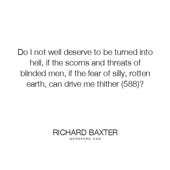 Do I not well deserve to be turned into hell, if the scorns and threats of blinded men, if the fear of silly, rotten earth, can drive me thither (588)?