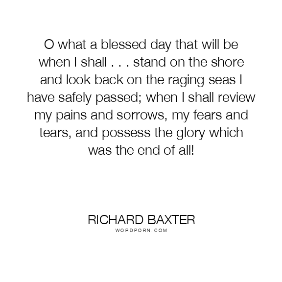 O what a blessed day that will be when I shall . . . stand on the shore and look back on the raging seas I have safely passed; when I shall review my pains and sorrows, my fears and tears, and possess the glory which was the end of all!