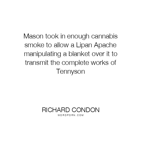 Copy Image Mason took in enough cannabis smoke to allow a Lipan Apache manipulating a blanket over it to transmit the complete works of Tennyson Moms Typewriter A A SAVE THIS IMAGE