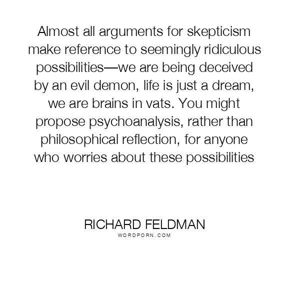 Almost all arguments for skepticism make reference to seemingly ridiculous possibilities—we are being deceived by an evil demon, life is just a dream, we are brains in vats. You might propose psychoanalysis, rather than philosophical reflection, for anyone who worries about these possibilities
