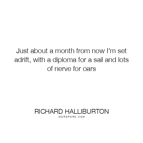 Just about a month from now I'm set adrift, with a diploma for a sail and lots of nerve for oars