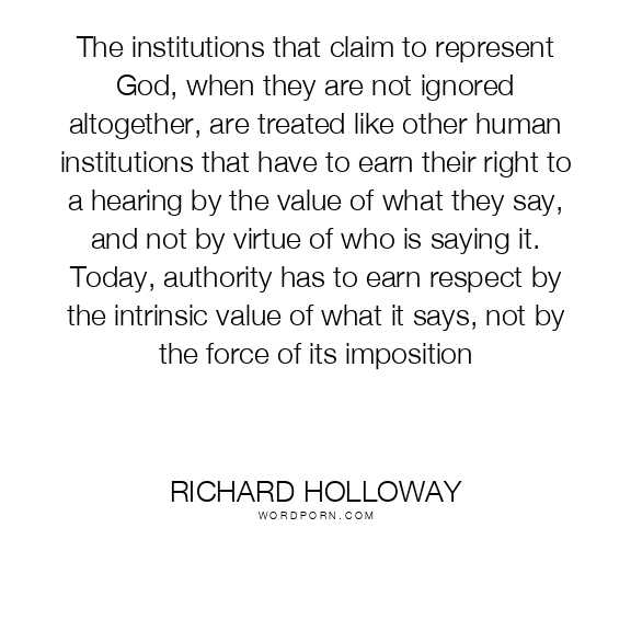 The institutions that claim to represent God, when they are not ignored altogether, are treated like other human institutions that have to earn their right to a hearing by the value of what they say, and not by virtue of who is saying it. Today, authority has to earn respect by the intrinsic value of what it says, not by the force of its imposition