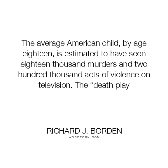 The average American child, by age eighteen, is estimated to have seen eighteen thousand murders and two hundred thousand acts of violence on television. The “death play