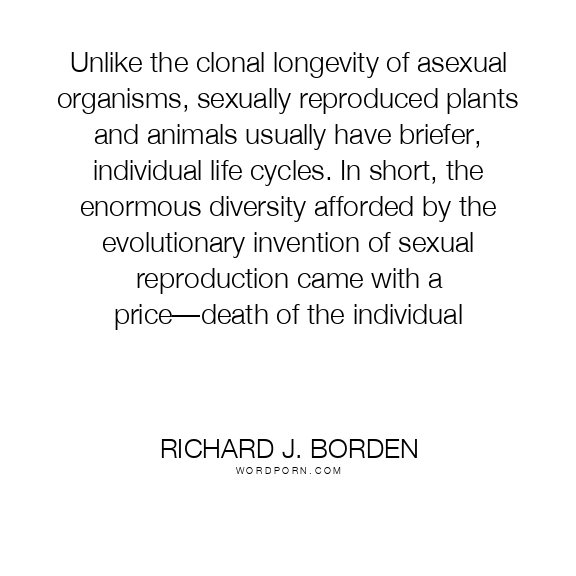 Unlike the clonal longevity of asexual organisms, sexually reproduced plants and animals usually have briefer, individual life cycles. In short, the enormous diversity afforded by the evolutionary invention of sexual reproduction came with a price—death of the individual