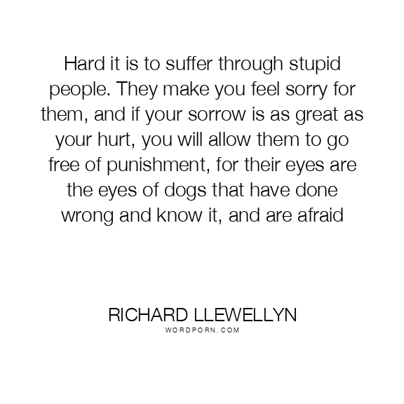 Hard it is to suffer through stupid people. They make you feel sorry for them, and if your sorrow is as great as your hurt, you will allow them to go free of punishment, for their eyes are the eyes of dogs that have done wrong and know it, and are afraid