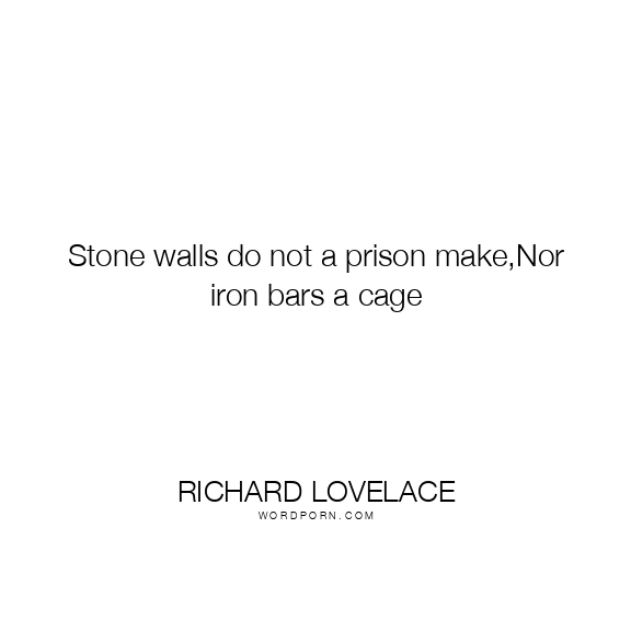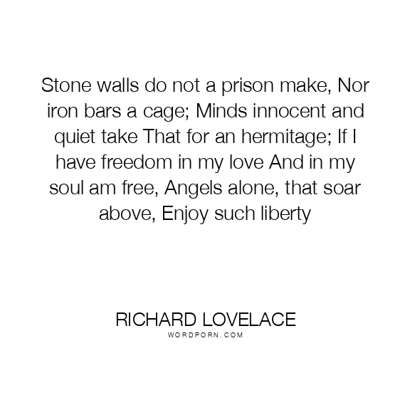 Stone walls do not a prison make, Nor iron bars a cage; Minds innocent and quiet take That for an hermitage; If I have freedom in my love And in my soul am free, Angels alone, that soar above, Enjoy such liberty