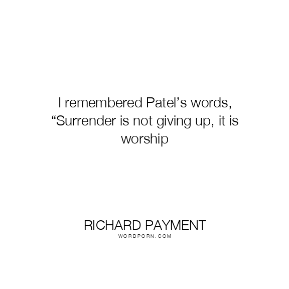 I remembered Patel’s words, “Surrender is not giving up, it is worship