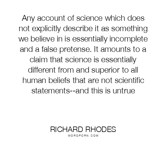 Any account of science which does not explicitly describe it as something we believe in is essentially incomplete and a false pretense. It amounts to a claim that science is essentially different from and superior to all human beliefs that are not scientific statements--and this is untrue