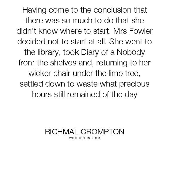 Having come to the conclusion that there was so much to do that she didn’t know where to start, Mrs Fowler decided not to start at all. She went to the library, took Diary of a Nobody from the shelves and, returning to her wicker chair under the lime tree, settled down to waste what precious hours still remained of the day