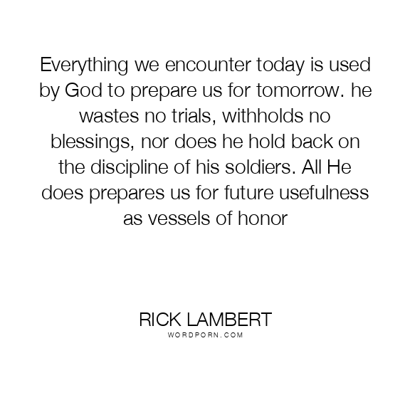 Everything we encounter today is used by God to prepare us for tomorrow. he wastes no trials, withholds no blessings, nor does he hold back on the discipline of his soldiers. All He does prepares us for future usefulness as vessels of honor