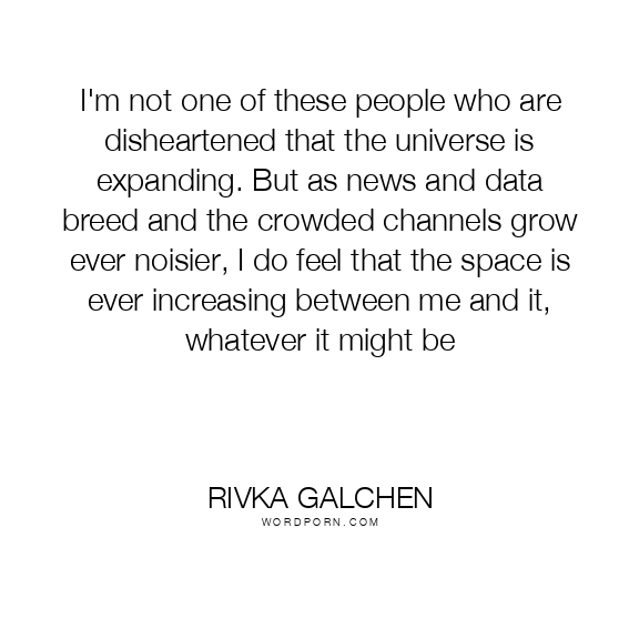 I'm not one of these people who are disheartened that the universe is expanding. But as news and data breed and the crowded channels grow ever noisier, I do feel that the space is ever increasing between me and it, whatever it might be