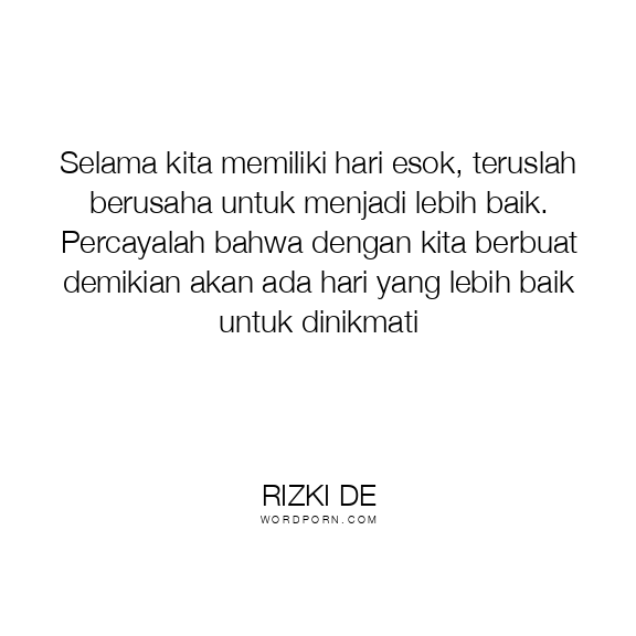 Selama kita memiliki hari esok, teruslah berusaha untuk menjadi lebih baik. Percayalah bahwa dengan kita berbuat demikian akan ada hari yang lebih baik untuk dinikmati
