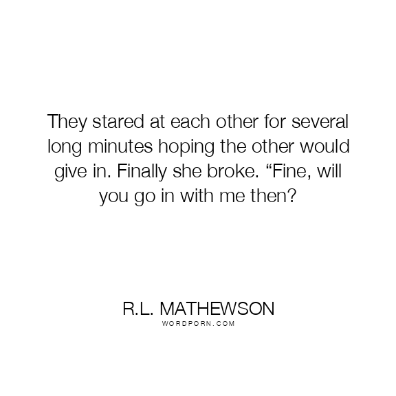 They stared at each other for several long minutes hoping the other would give in. Finally she broke. “Fine, will you go in with me then?