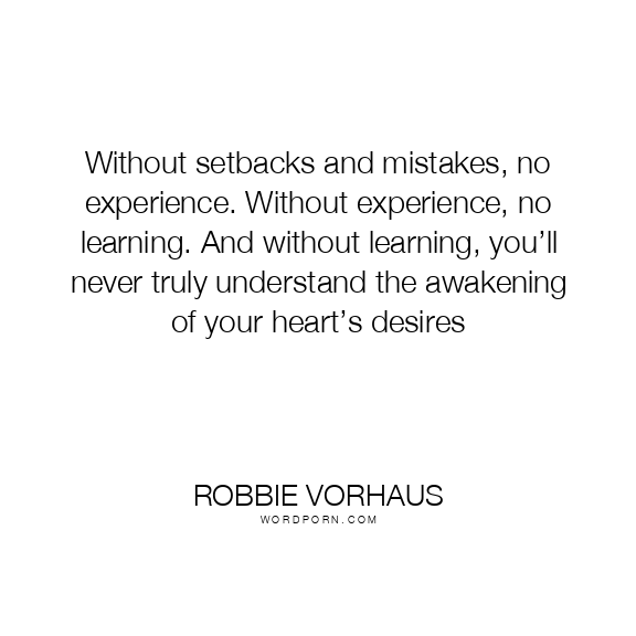 Without setbacks and mistakes, no experience. Without experience, no learning. And without learning, you’ll never truly understand the awakening of your heart’s desires