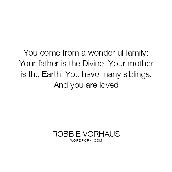You come from a wonderful family: Your father is the Divine. Your mother is the Earth. You have many siblings. And you are loved