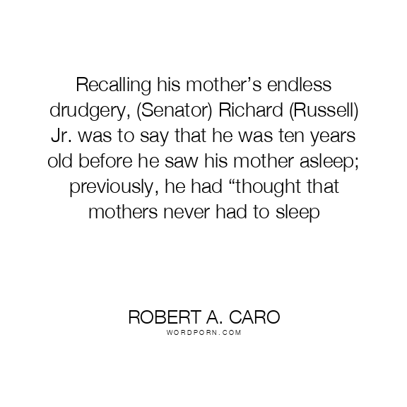 Recalling his mother’s endless drudgery, (Senator) Richard (Russell) Jr. was to say that he was ten years old before he saw his mother asleep; previously, he had “thought that mothers never had to sleep