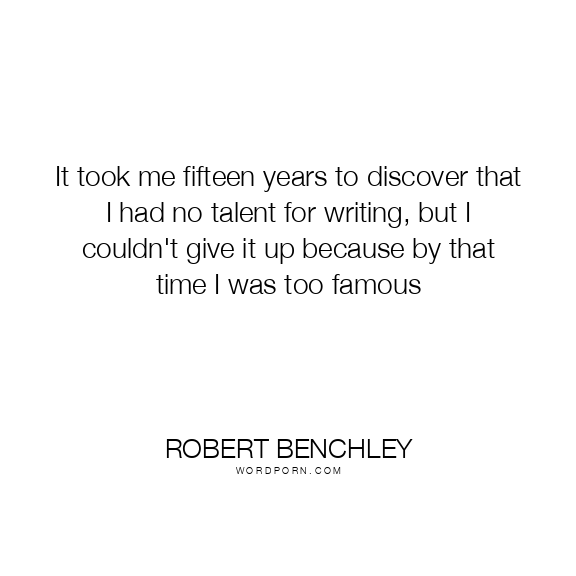 It took me fifteen years to discover that I had no talent for writing, but I couldn't give it up because by that time I was too famous