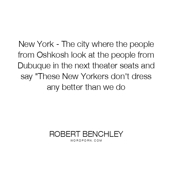 New York - The city where the people from Oshkosh look at the people from Dubuque in the next theater seats and say "These New Yorkers don't dress any better than we do