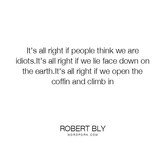 It's all right if people think we are idiots.It's all right if we lie face down on the earth.It's all right if we open the coffin and climb in