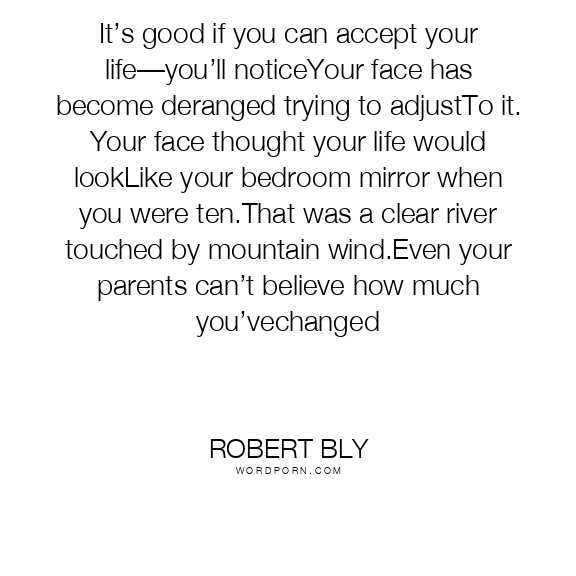 It’s good if you can accept your life—you’ll noticeYour face has become deranged trying to adjustTo it. Your face thought your life would lookLike your bedroom mirror when you were ten.That was a clear river touched by mountain wind.Even your parents can’t believe how much you’vechanged