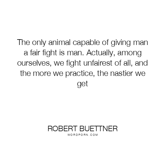 The only animal capable of giving man a fair fight is man. Actually, among ourselves, we fight unfairest of all, and the more we practice, the nastier we get