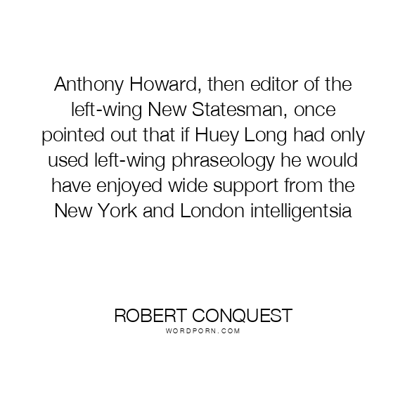 Anthony Howard, then editor of the left-wing New Statesman, once pointed out that if Huey Long had only used left-wing phraseology he would have enjoyed wide support from the New York and London intelligentsia