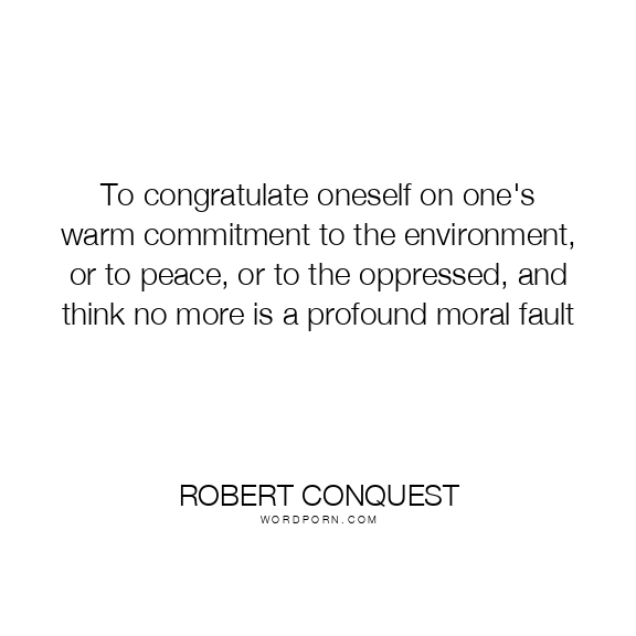 To congratulate oneself on one's warm commitment to the environment, or to peace, or to the oppressed, and think no more is a profound moral fault