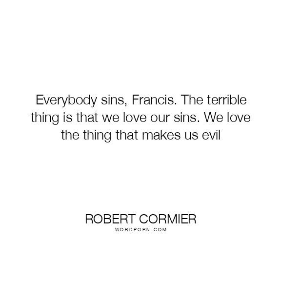 Everybody sins, Francis. The terrible thing is that we love our sins. We love the thing that makes us evil