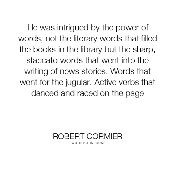 He was intrigued by the power of words, not the literary words that filled the books in the library but the sharp, staccato words that went into the writing of news stories. Words that went for the jugular. Active verbs that danced and raced on the page