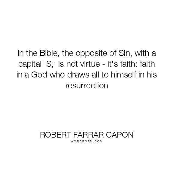 In the Bible, the opposite of Sin, with a capital 'S,' is not virtue - it's faith: faith in a God who draws all to himself in his resurrection