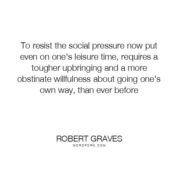 To resist the social pressure now put even on one's leisure time, requires a tougher upbringing and a more obstinate willfulness about going one's own way, than ever before