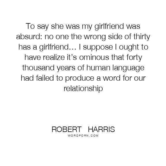 To say she was my girlfriend was absurd: no one the wrong side of thirty has a girlfriend… I suppose I ought to have realize it’s ominous that forty thousand years of human language had failed to produce a word for our relationship